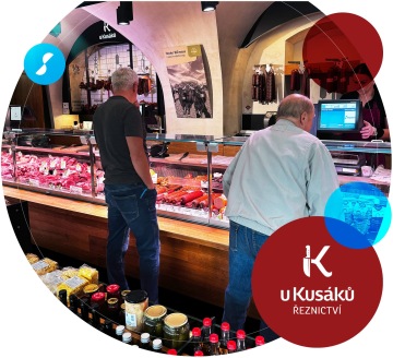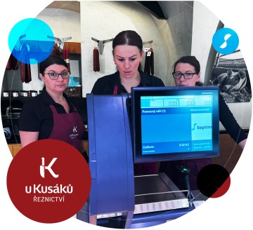 Zákazník v Řeznictví U Kusáků má dvě možnosti: návštěvu bistra, kde si může objednat jídlo na talíř nebo s sebou, a kde se provádí jediné fyzické platby v hotovosti nebo kartou. Alternativně může zákazník zamířit k pultu s masem a uzeninami, vybaveném čtyřmi váhopokladnami Septim. Zde pokladní otevře zákazníkův účet přiložením kartičky ke čtečce, která s sebou nese QR kód a veškeré objednávky se markují právě na tuto kartičku.
