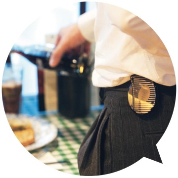 Waiters are equipped with CrystallCall pagers, through which they receive a message from the kitchen that their food is ready for pick-up. This speeds up guest service and therefore guest turnaround in the restaurant, and guests are not disturbed by, for example, the doorbell. Another benefit is a reduction in unnecessary waiter errands to the kitchen.