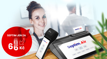 Pokladní systém Septim.Air nabízí nejlevnější a nejrychlejší možnost jak začít Septim využívat. Jedná se o online cloudové řešení, kde jednorázově neplatíte software ani hardware.